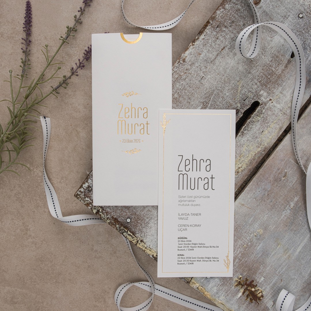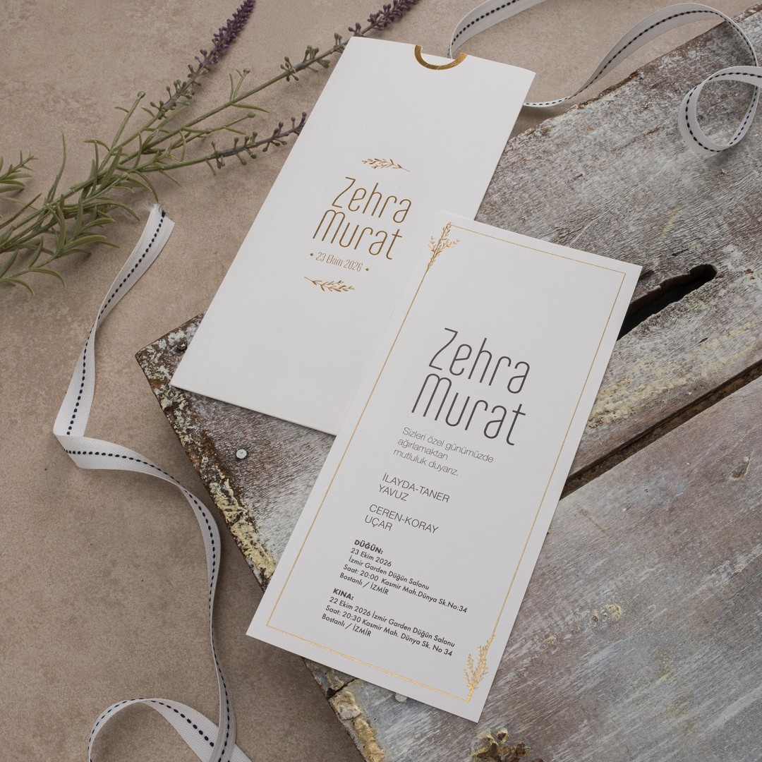 Davetiye ofset, varak yaldız ve serigraf boya baskı tekniğine uygun olup