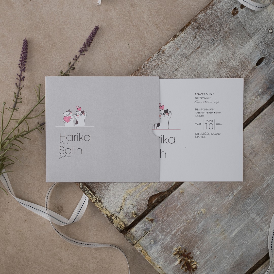 Davetiye ofset, varak yaldız ve serigraf boya baskı tekniğine uygun olup