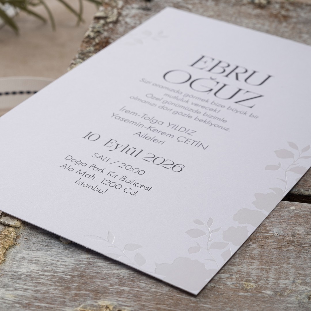 Davetiye ofset, varak yaldız ve serigraf boya baskı tekniğine uygun olup