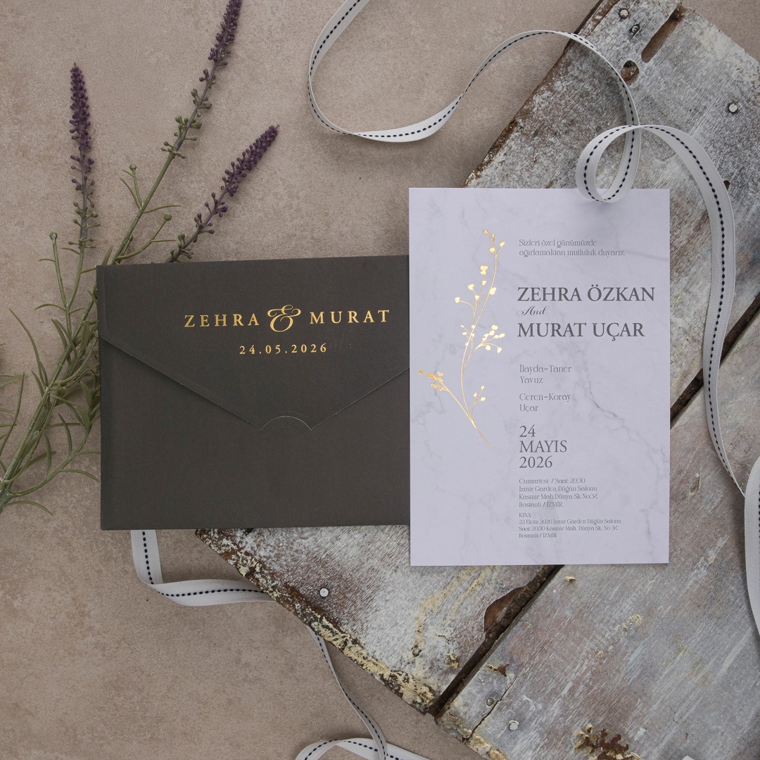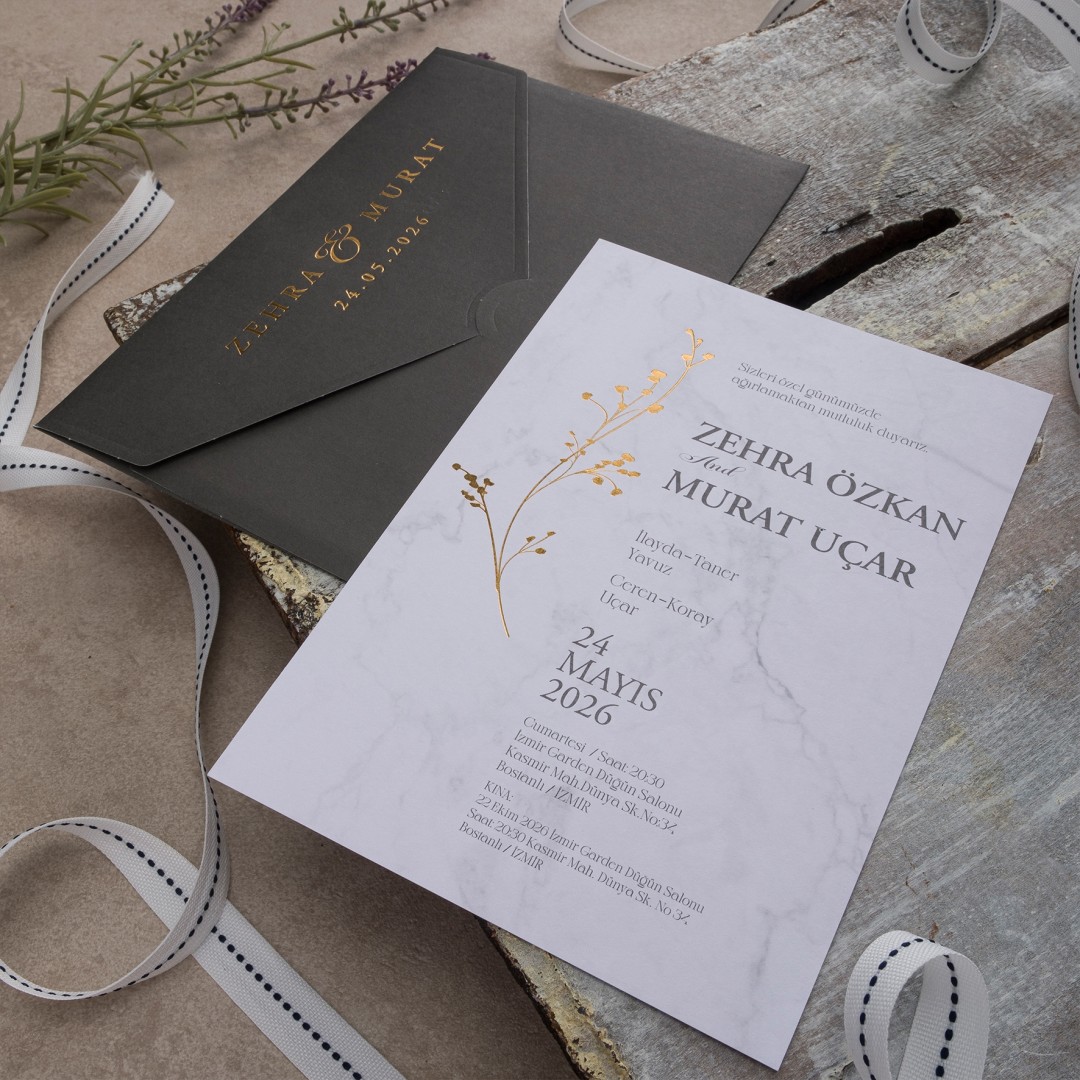 Davetiye ofset, varak yaldız ve serigraf boya baskı tekniğine uygun olup