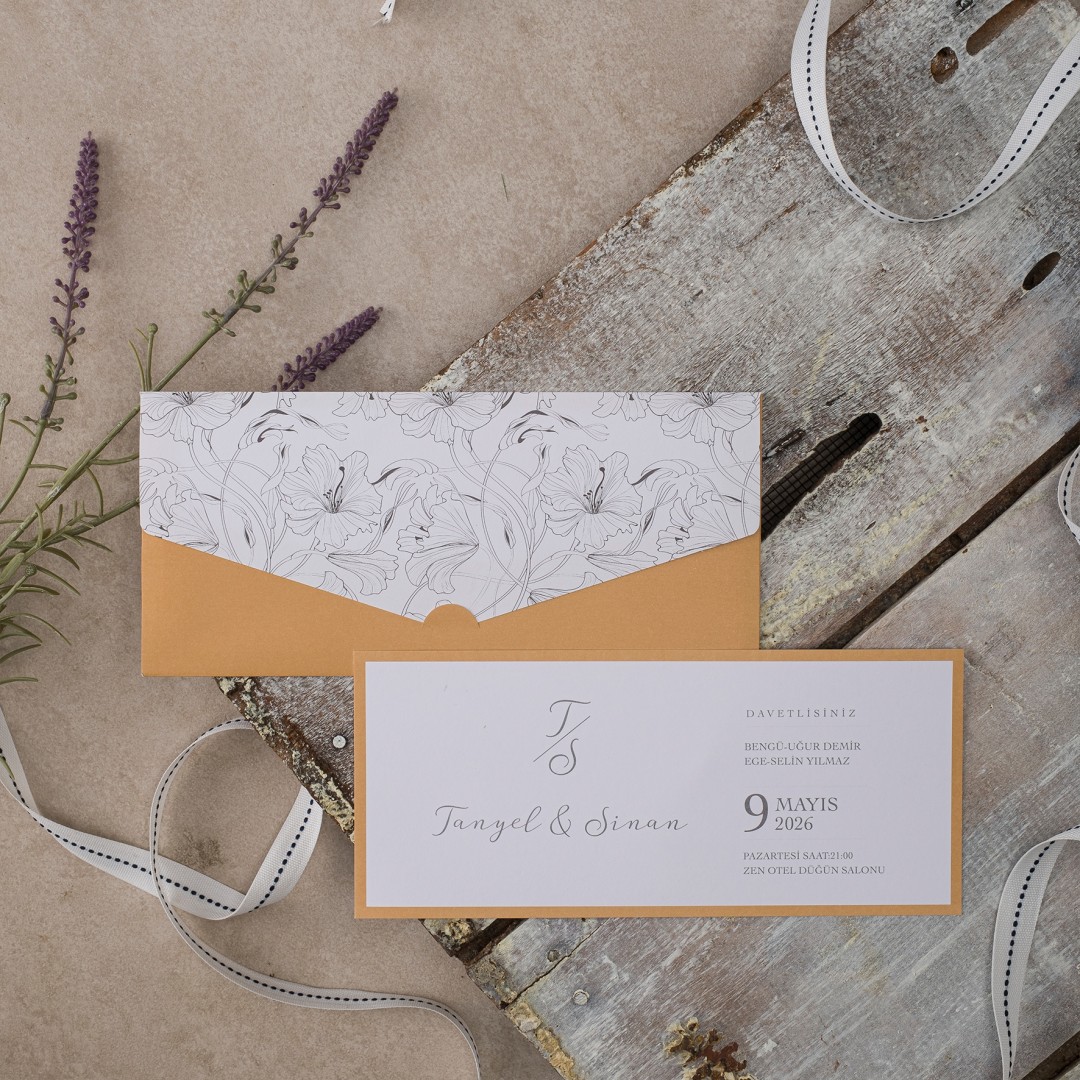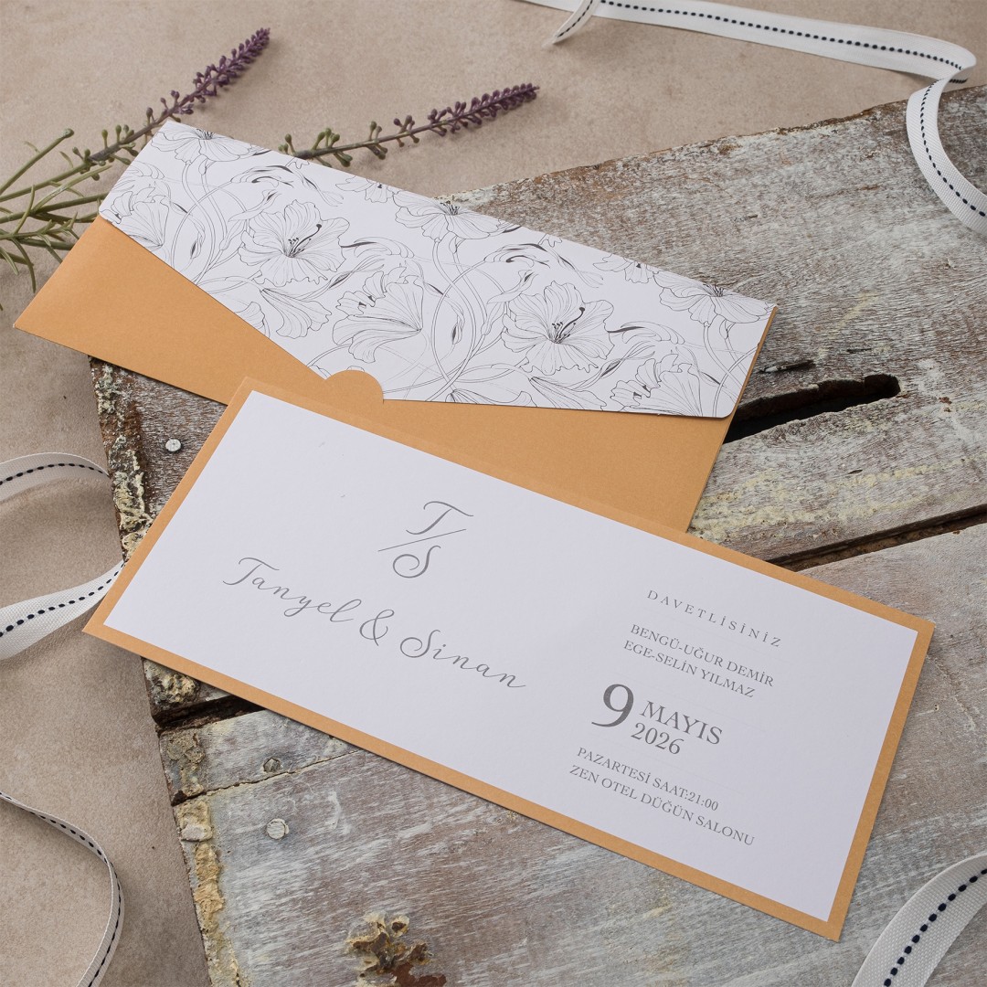 Davetiye ofset, varak yaldız ve serigraf boya baskı tekniğine uygun olup