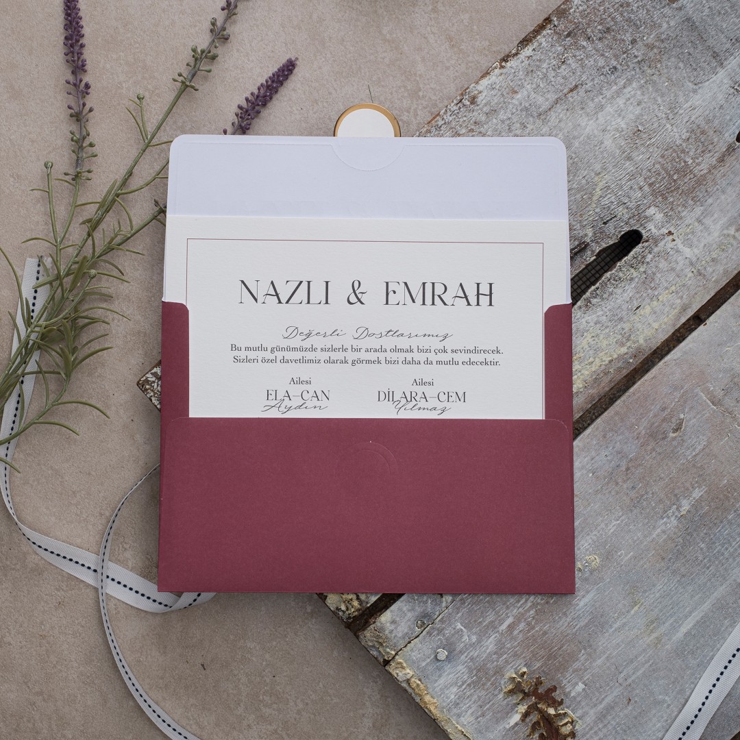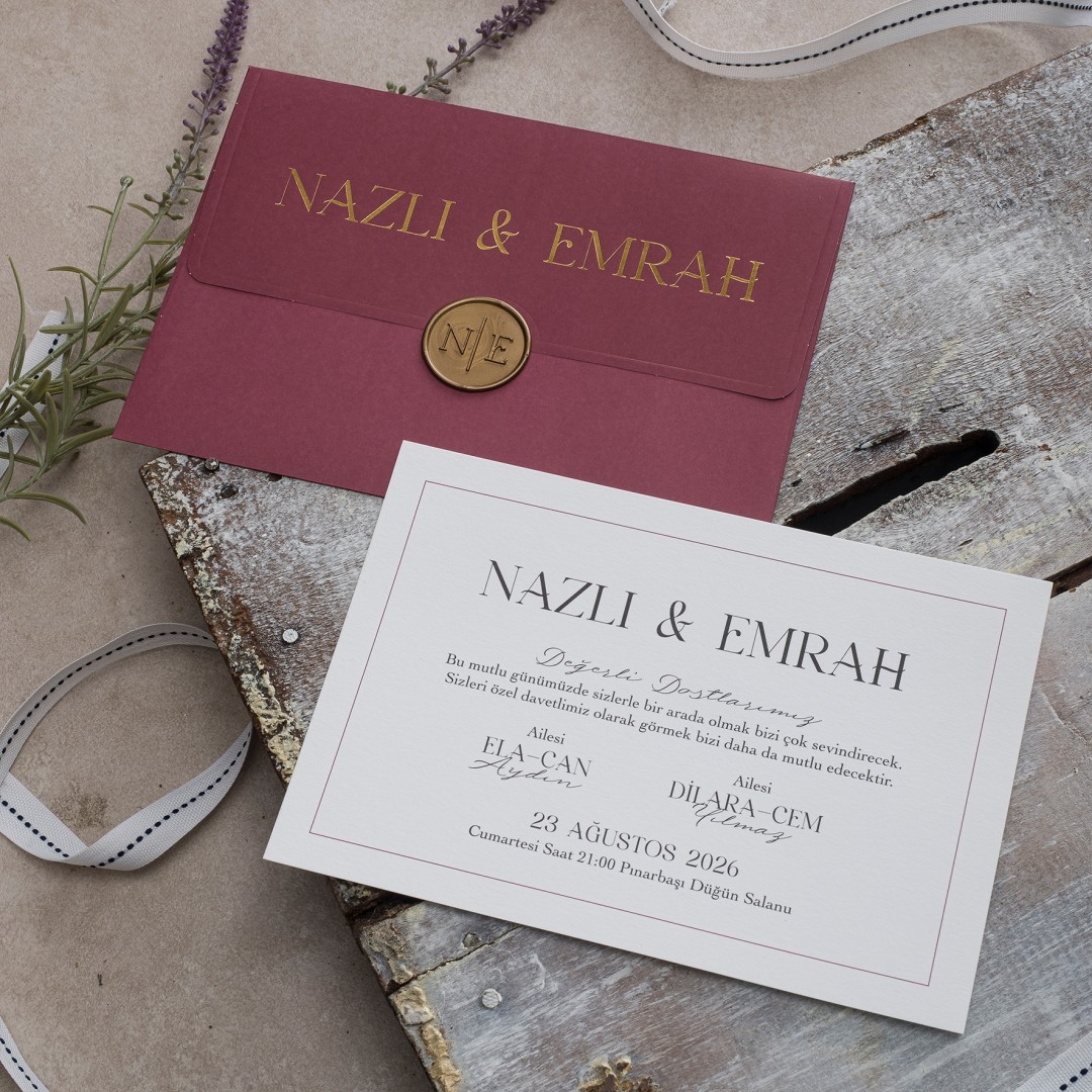 Mühür isteğe bağlıdır. Tercih etmediğinizde Mühürsüz zarf + iç davetiyeniz gelecektir.