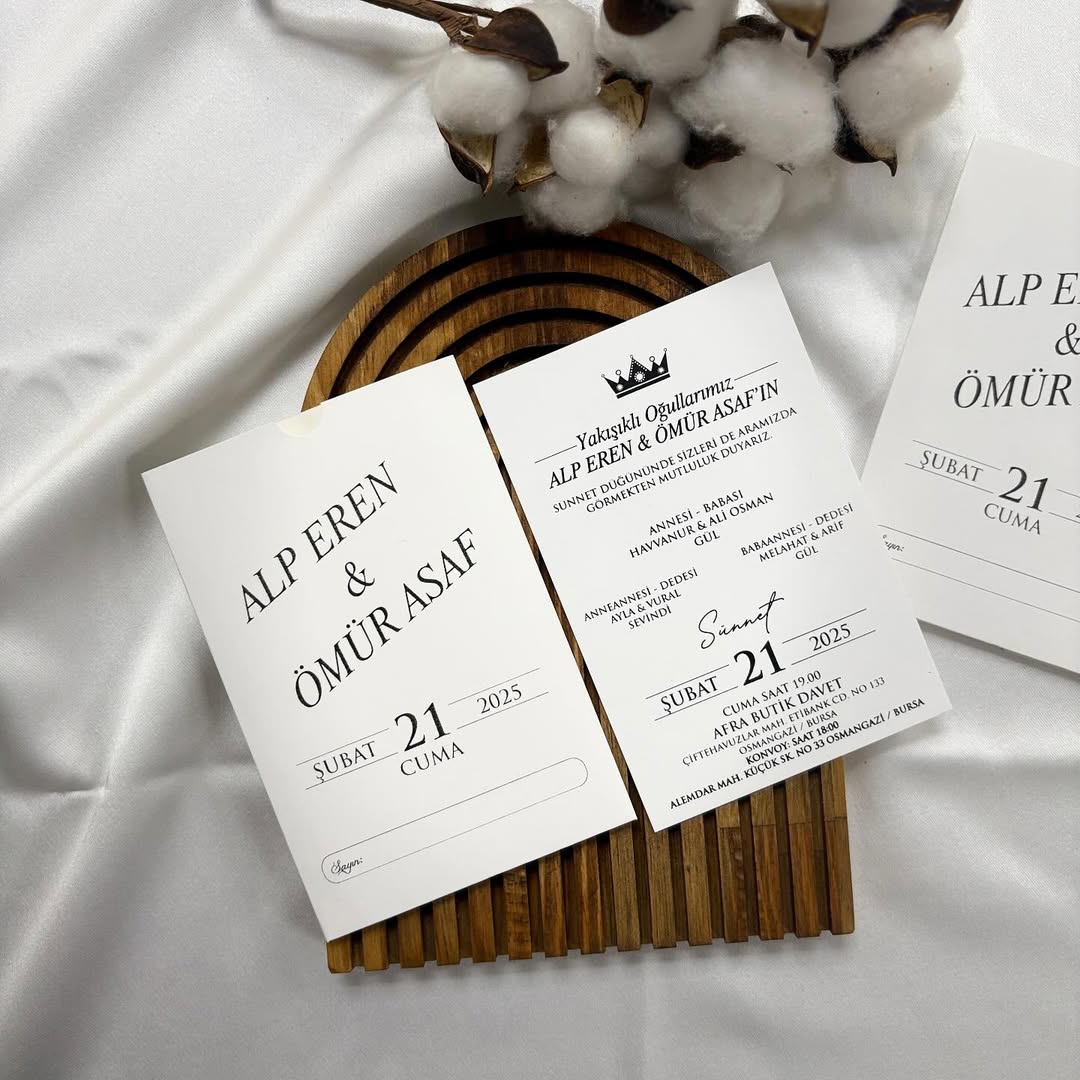 - DAVETİYE MODELLERİ KİŞİYE ÖZEL TASARIM YAPILABİLMEKTEDİR.