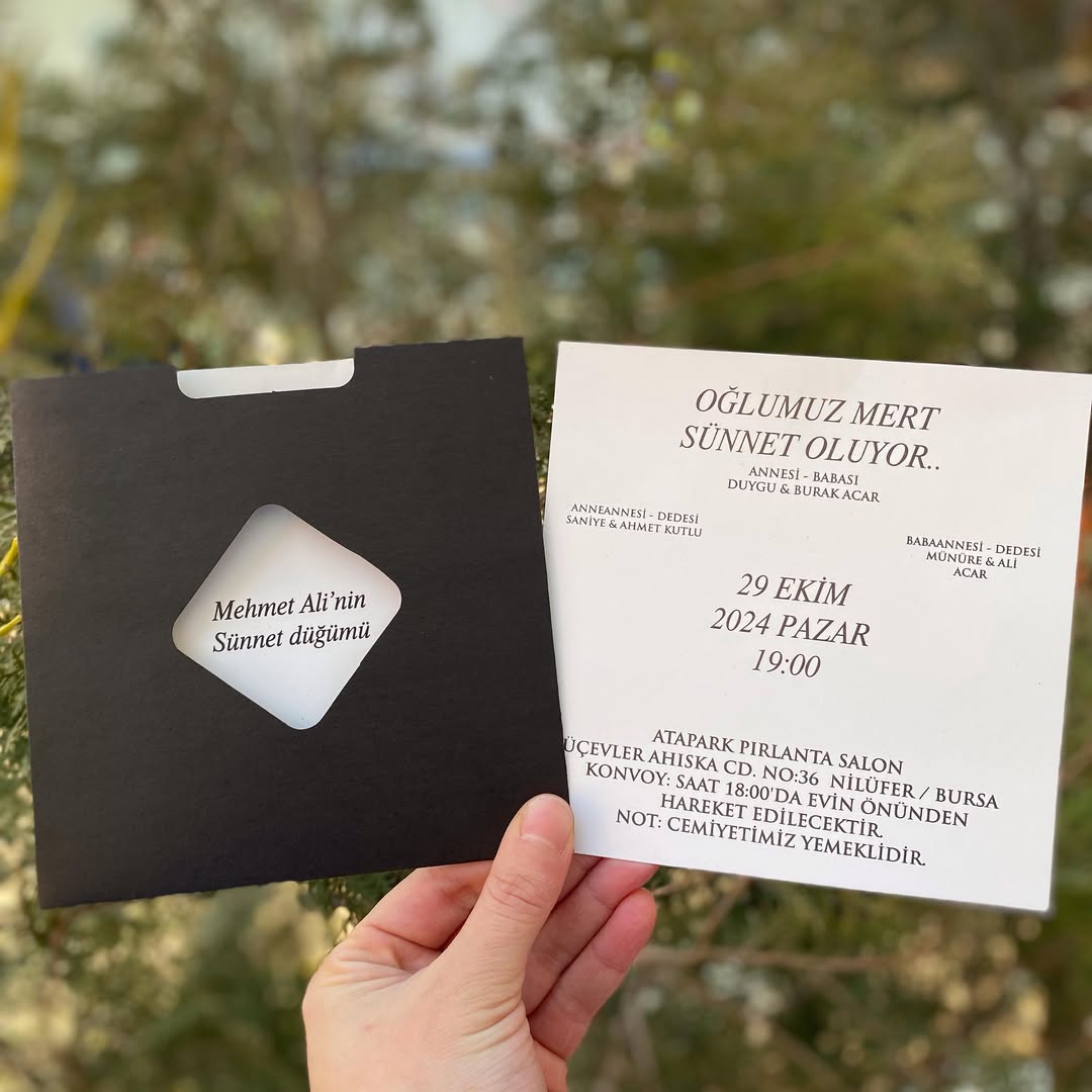 - DAVETİYE MODELLERİ KİŞİYE ÖZEL TASARIM YAPILABİLMEKTEDİR.
